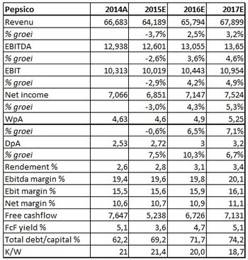 Volgens het management zal de dure dollar zeer nadelig uitpakken voor het resultaat over heel 2015. Voor de omzet schat Pepsico het negatief effect op 10% en voor de winst per aandeel zelfs op 11%. Aan het begin van 2015 dacht het management dat het valutaire nadeel beperkt zou blijven tot 7%. Gelet op de huidige volatiliteit in de valutamarkten is Pepsico hier wat te pessimistisch en legt het bedrijf hier stiekem een voorzichtige basis voor een positieve verrassing over 2015. Het bedrijf wil bovendien dit jaar ruim $ 1 miljard op de kosten besparen.