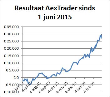 Wij hebben met AexTrader, ons handelssysteem voor de Amsterdamse beursgraadmeter goede zaken gedaan en ruim 13 punten winst gemaakt oftewel 2.600 euro. Daarmee staat ons rendement op 200%!. Het kapitaal is namelijk aangegroeid van € 15.000 naar € 44.642.