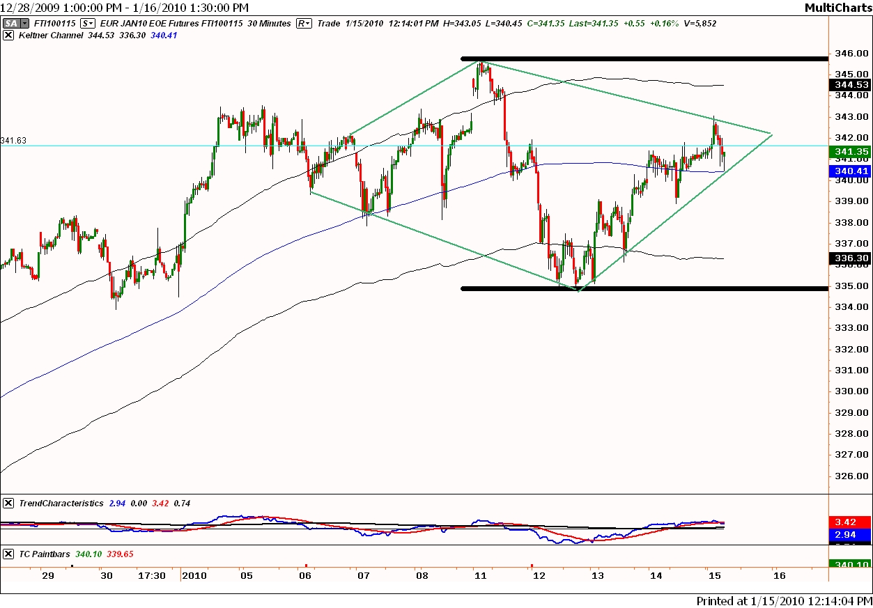 Geen posities, onder 335 (op slotbasis) entry short. Speculatief ingestelden gaan short rond 341, stoploss 345 op slotbasis.