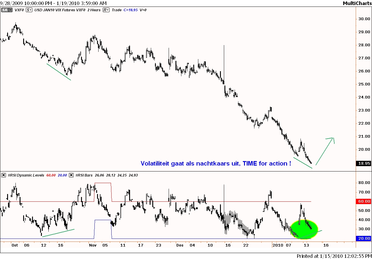 Tom, de VIX staat in de zone van waaruit ze kan stijgen, historisch gezien. Natuurlijk kan het nog lager maar niet veel meer. Nu is dat alleen niet genoeg argumentatie deze waarde eraan toe te kennen, maar interessant is natuurlijk wel dat er een buy-setup staat in de RSI in een zo belangrijke week waar prijs en tijd samenkomen.