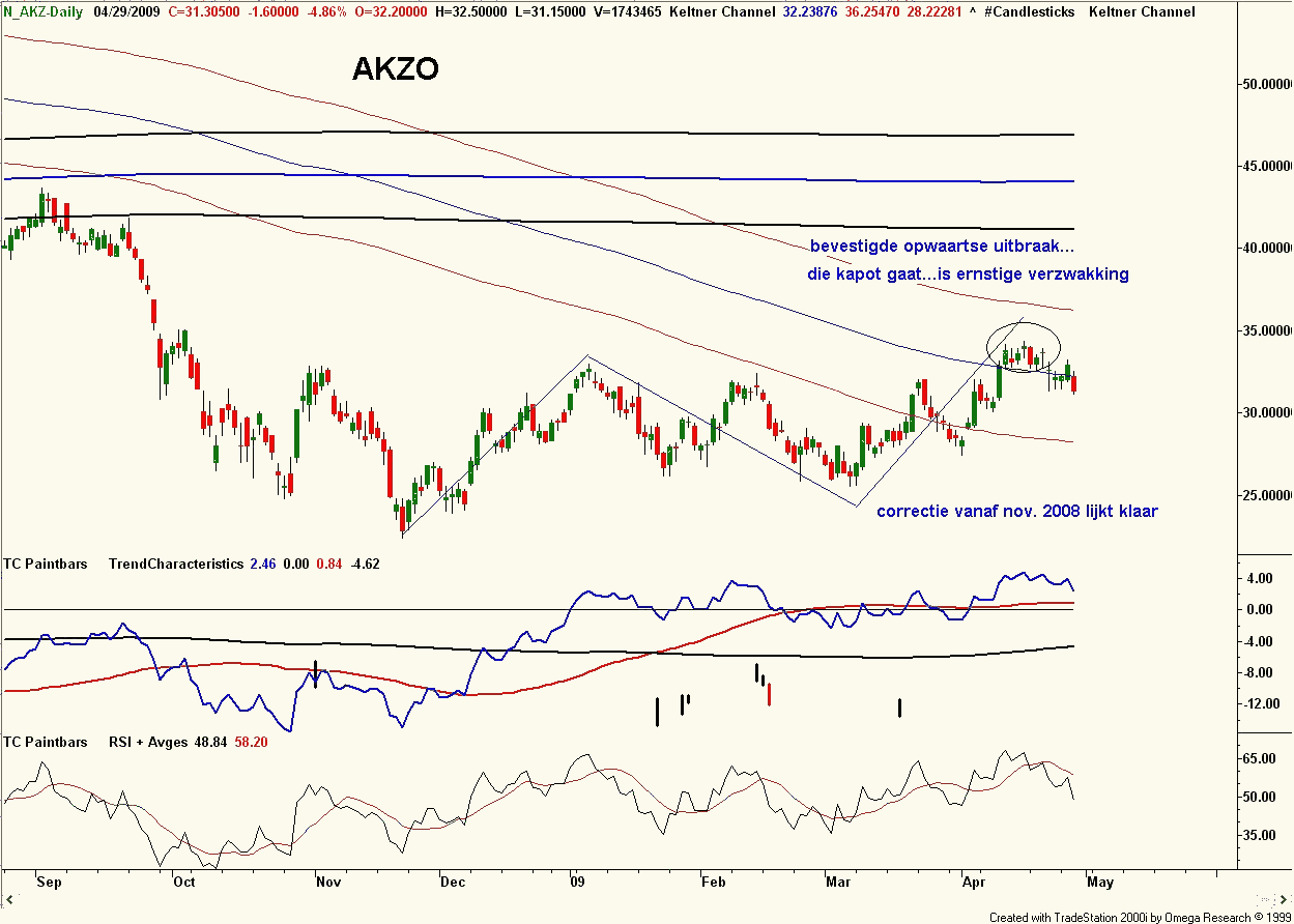Technische analyse van Akzo op 30 april 2009 (daggrafiek)