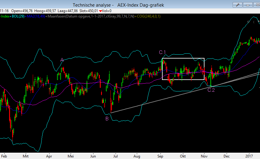 En, lijkt het plaatje op het plaatje van toen op die van nu? Ik vind van wel! We weten natuurlijk nog heel goed wat daarna kwam in augustus. Of dat nu weer zo gaat zijn is afwachten natuurlijk, maar gezien de behoorlijke stijgingen in Amerika, lijkt deze markt nog verder omhoog te willen en kunnen! In 2015 was het zo’n 51 punten in 9 dagen tijd. Ik verwacht, indien het nu doorzet naar de 563,50, een ‘mini versie’ hiervan te zien: 24 punten in 6/7 dagen tijd.
