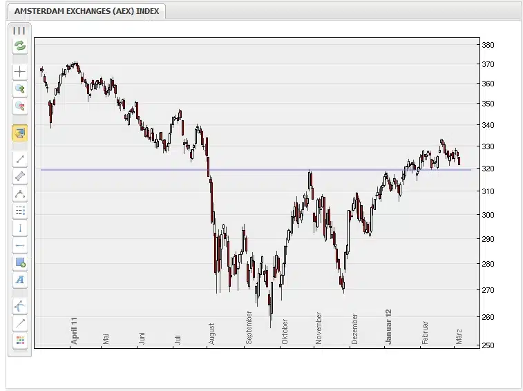 Wij gaan short op de AEX op 327,35. Wij kopen 250 stuks AEX CT Lim Speeder Short 360 16-03-2012