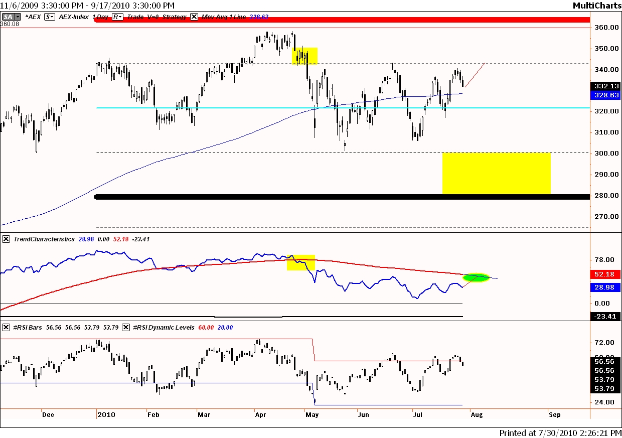 Short AEX 337, koersdoel 250 / 220, stoploss 345 op slotbasis