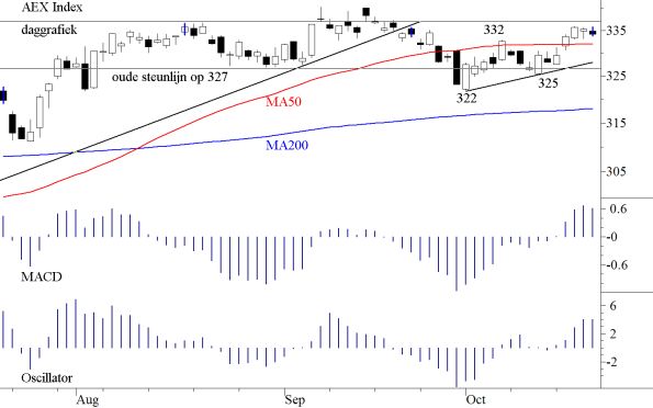 Stand van de AEX Index op het moment van schrijven (2012-10-22) 334,71