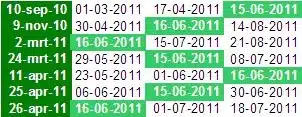 Terwijl ik de gegevens invoerde in mijn spreadsheet viel mijn oog op twee andere draaipunten die zeer dichtbij 10-13 juni liggen. Soms hebben dergelijke data betrekking op dezelfde datum, maar in dit geval vermoed ik dat het om een ander draaipunt gaat. Te meer daar de ingevoerde data ook bijna allemaal op zich weer belangrijke draaipunten zijn: