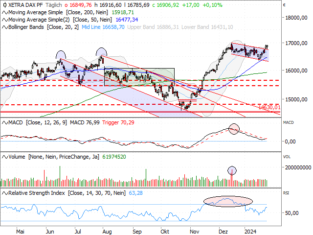 De DAX nam gisteren een kleine adempauze voordat een sterke tussensprint in de middag uiteindelijk toch nog zorgde voor een kleine dagelijkse winst. Dankzij deze ontwikkeling bevestigt de aandelenindex uiteindelijk de uitbraak uit de correctievlag die sinds half december bestaat.