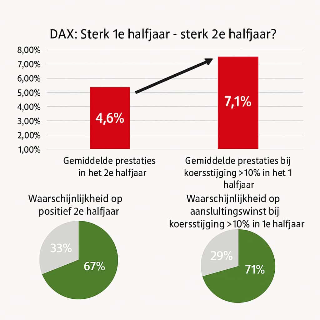 Op basis van data sinds 1988 is onderzocht hoe de DAX presteert in de tweede helft van het jaar (juli-december), specifiek ná een eerste halfjaar waarin de index met meer dan 10% is gestegen. De resultaten zijn opmerkelijk en bieden een positief perspectief.