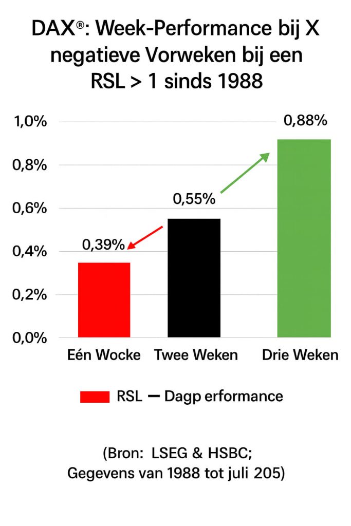 Het Signaal: Controleer eerst of de week-RSL van de DAX (of een aandeel) boven de 1 staat. Is de trend opwaarts?