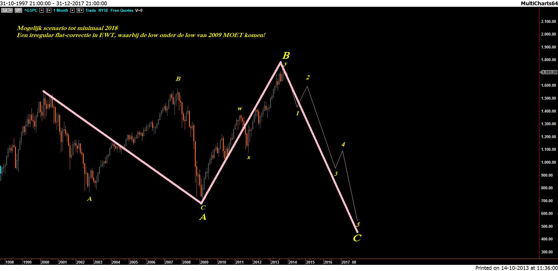 Een irregular flat, het vraagt best wel wat vakmanschap om de juiste benaming te geven bij een Elliott wave telling en hier worden vaak fouten in gemaakt en deze telling laat ik voor de auteur, maar dat het eindigt in een verwoestende bearmarkt is zeker.