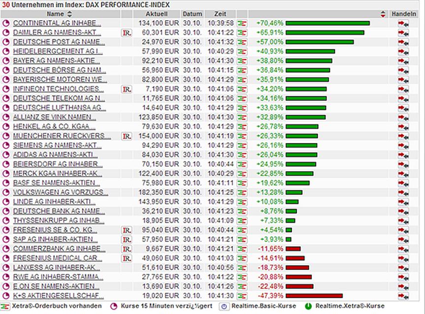De Deutscher Aktien Index (DAX), de hoofdgraadmeter van de Duitse effectenbeurs, is in oktober voor het eerst in de geschiedenis door de grens van 9000 punten gegaan. En dan te bedenken, dat nog slechts enkele jaren geleden, in september 2009, een dieptepunt werd genoteerd. De index daalde toen naar een niveau van slechts 3588,89 punten. Daarna werd een gestage weg omhoog ingezet, waarbij in maart dit jaar de grens van 8000 punten werd geslecht.