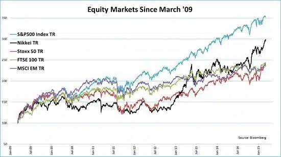 Deze week vieren we de verjaardag van de bodem uit 2009. Op 6 maart van dat jaar bereikten de belangrijkste beursgraadmeters een dieptepunt (voor de S&P op 666 punten) waarna een fors herstel is opgetreden. Sindsdien is de toonaangevende beursindex S&P 500 inclusief dividend met liefst 250% gestegen. Die opleving werd vooral gestuwd door de monetaire maatregelen van centrale banken. Een ongekend pakket van kwantitatieve verruiming werd gelanceerd. Centrale banken zitten dus aan de knoppen. Als laatste heeft de Europese Centrale Bank (ECB) een duitje in het zak gedaan waardoor de waarde van de euro ingestort is.