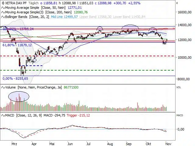 De DAX kon het herstel dat begon voortzetten. De herovering van het wekelijkse draaipunt (11.804 punten) bleek de voorspelde katalysator te zijn. In combinatie met de opwaartse kloof van gisteren op 11.838 / 11.851 punten, zal het gemiddelde van de hoge, lage en slotkoers van de vorige week fungeren als de eerste steunzone.
