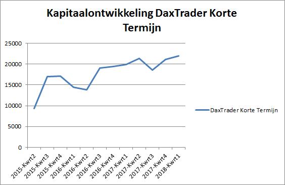 We hebben met DaxTrader, ons handelssysteem voor de DAX, een prima resultaat gehaald. Het kapitaal is per 2 januari 2018 aangegroeid van € 7.000 naar € 21.974. Dat is een rendement van ruim 213% oftewel € 14.974.