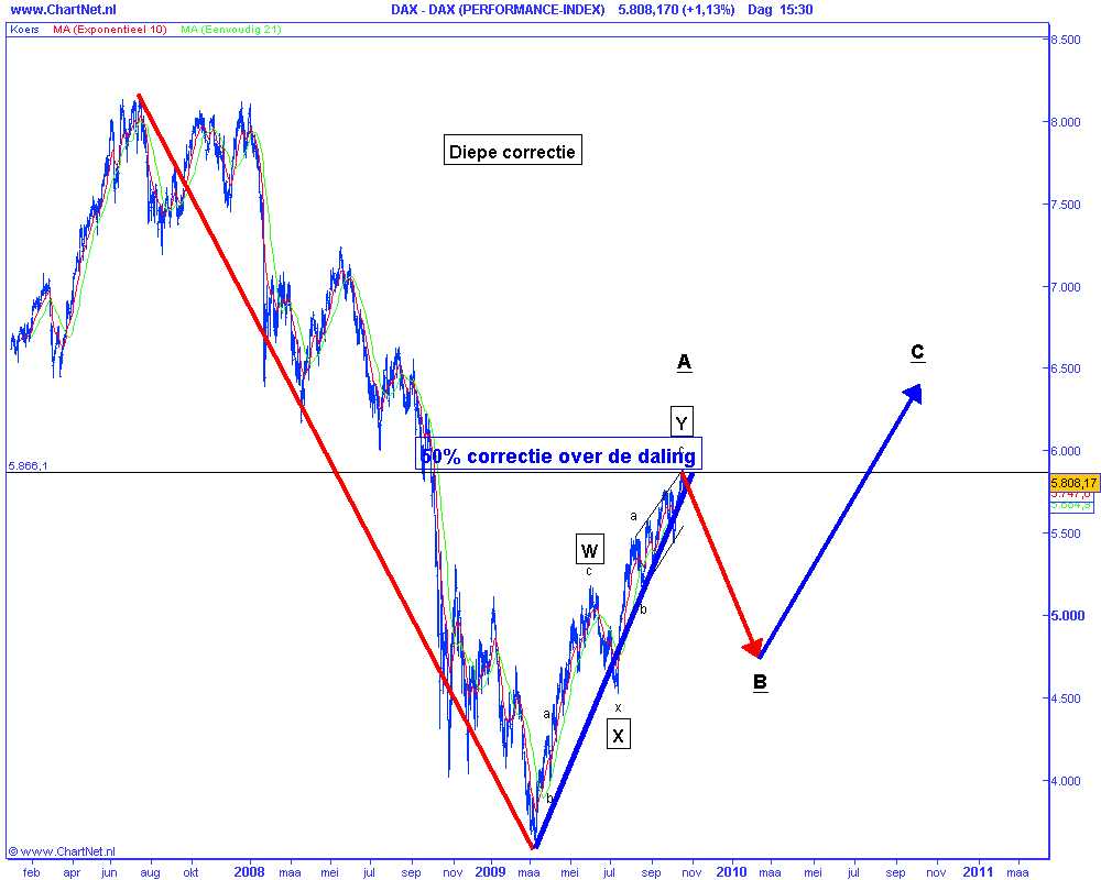 Technische analyse van de Duitse DAX op 20 oktober 2009 (op basis van Elliot Wave) diepe correctie