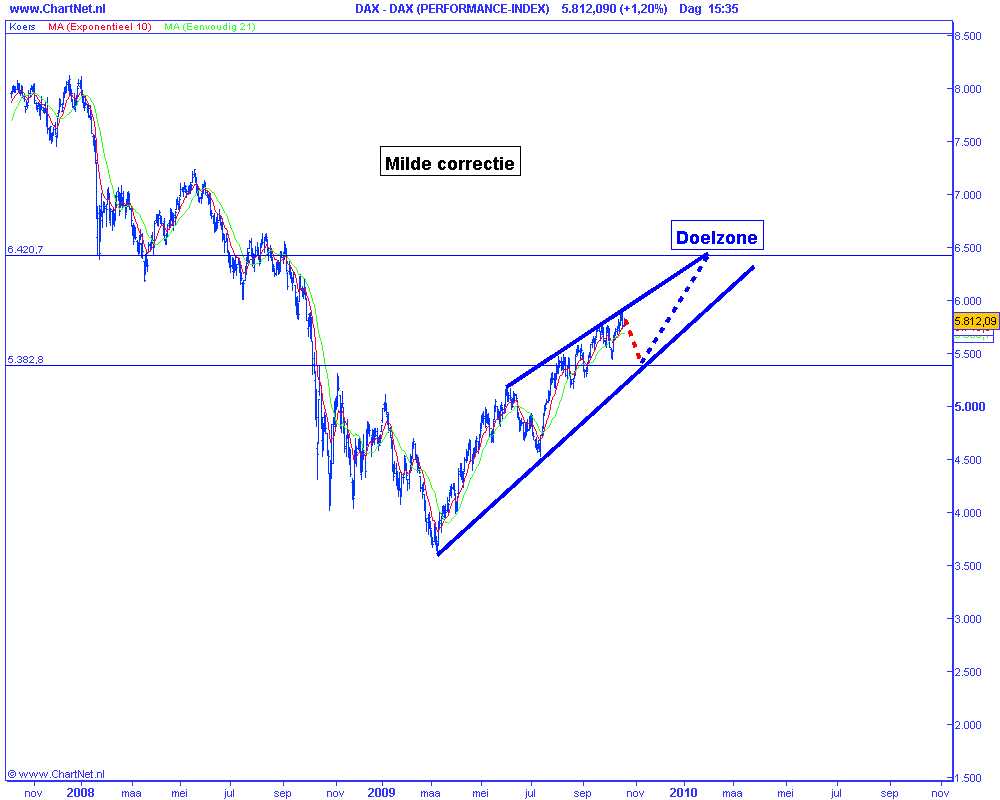 Technische analyse van de Duitse DAX op 20 oktober 2009 (op basis van Elliot Wave) milde correctie