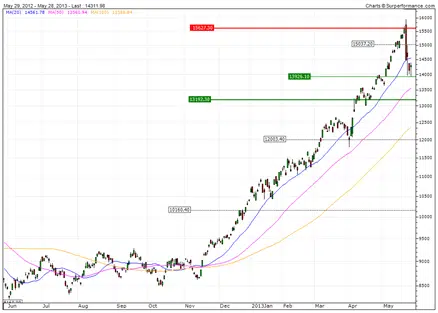 De directe aanleiding van de bijna crash waren berichten uit China, dat de industriële productie niet zo sterk was als gehoopt. De oorzaak moet echter gezocht worden in de toespraak van Ben Bernanke, de voorzitter van de Fed, tot het Congres. In zijn toespraak suggereerde hij, dat het lopende monetaire verruimingsprogramma, beter bekend als QE3 niet eindeloos door kon gaan. Alles hing in zijn ogen af van de kracht van het herstel. Als dat sterk genoeg was, dan kon met afbouwen een begin gemaakt worden. Volgens sommige beleggers luidde Bernanke hiermee het einde in van de toestroom van goedkoop geld naar de financiële markten. Die conclusie mag op zijn zachtst gezegd voorbarig genoemd worden, gelet op de gemengde berichten over het herstel van Amerikaanse economie.