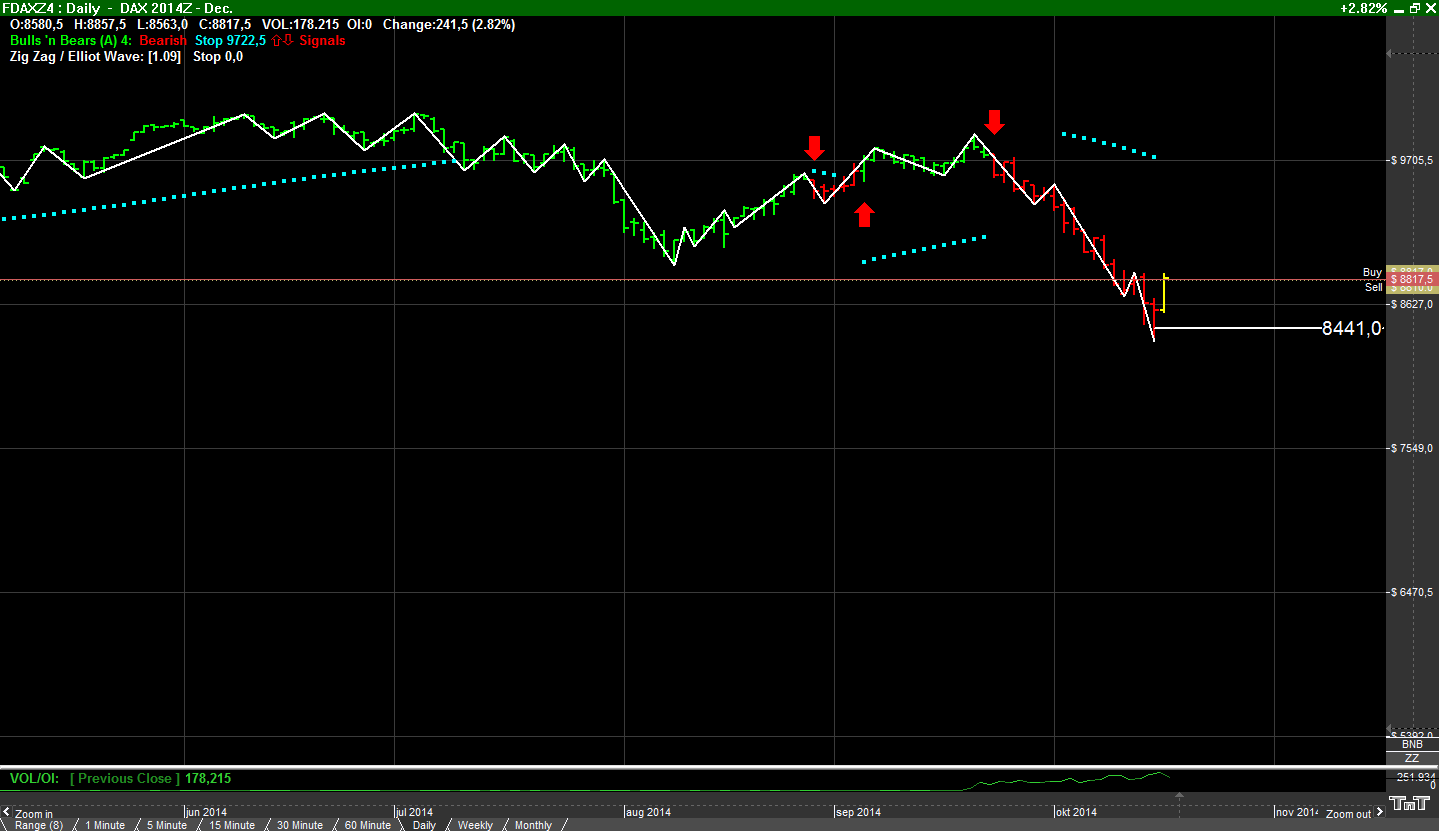 De Dax is bezig met een bodem te vormen. Neem aan dat dit niet de bodem is of anders ik denk niet dat de laagste koers van 2014 is geprint.