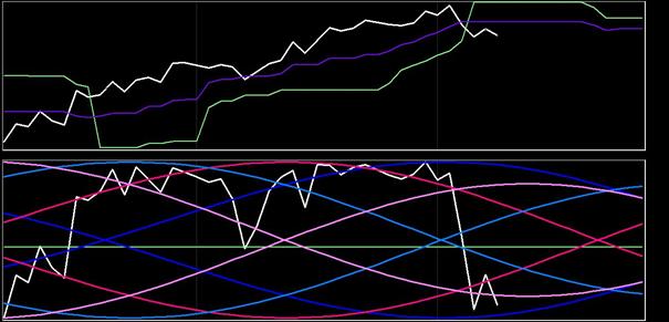 Anders dan de traditionele technische analyse volgt het koersverloop de indicatoren (de cycli), in plaats van andersom.