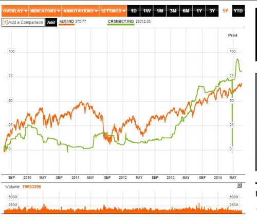 De beursgraadmeter van het Latijns-Amerikaanse land heeft een top gezet die bij de AEX nog niet gezien is. Op grond daarvan lijkt het volgens socionomics logische dat het Nederlandse elftal wint van Costa Rica. Wel zal de wedstrijd wederom spannend worden en het verschil niet groot zijn.