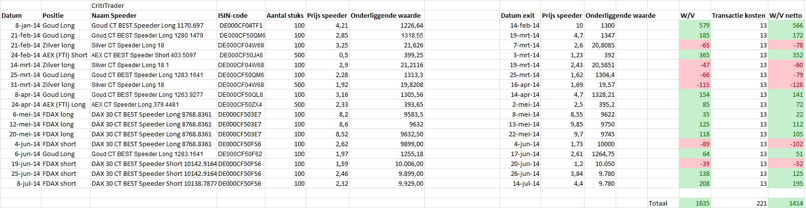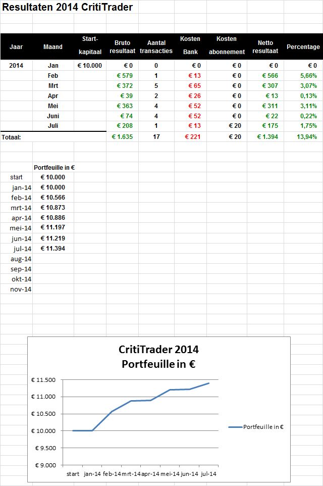 Alle bedragen zijn netto dus inclusief transactie-en abonnementskosten. U ziet dat wij dit jaar geen enkel maand verlies hebben gemaakt.