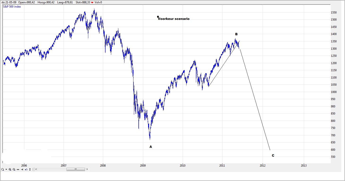 Het herstel, dat zich sinds de bodem van 25 mei manifesteert, is in mijn ogen slechts een correctie op de voorgaande daling. De AEX heeft de trend sinds maart 2009 reeds gebroken en is ook onder de MA 200 gezakt. Allemaal signalen dat er wat aan het veranderen is in de markt, waarbij opgemerkt dient te worden dat de AEX wel de zwakste broeder is in de klas van Westerse markten. Ook de S&P liet deze week wat herstel zien, dit kan golf 2 zijn in de neergaande trend.