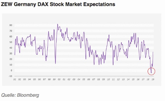 ““Met een waarschijnlijkheid van 90% zal de DAX niet onder de 10.000 punten dalen””Het gemiddelde prijspotentieel aan het einde van 2019 is 13.000 punten.”
