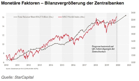 Het koersdoel voor eind 2020 is 14.500 punten voor de DAX . Dit is in eerste instantie niet spectaculair, omdat het dit keer ongeveer overeenkomt met de consensusraming van de huidige beursvoorspellingen. Volgens een enquête van Euro op zondag 7 december verwachten de leidende banken eind volgend jaar een DAX van 13.920.