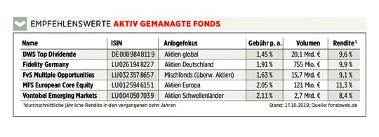 Thomas Schuessler belegt ook in aandelen wereldwijd, maar versterkt het defensief op andere manieren. Schüßler beheert de DWS Top Dividende, het grootste aandelenfonds in Duitsland. Hij koopt bedrijven die degelijk opereren en tegelijkertijd een beetje meer geld uitgeven aan de aandeelhouders dan het gemiddelde. Tussen vier en 4,5 procent moet het dividendrendement zijn, dat wil zeggen het quotiënt van de uitbetaling per aandeel en de beurskoers, vermenigvuldigd met 100. Het gestelde doel van Schüßler: de zenuwen van beleggers beschermen.