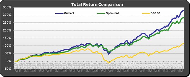 De resultaten laten een solide rendement zien. De Monte-Carlo simulatie uitgevoerd met dezelfde aandelen over een langere periode vanaf 2003 tot december 2013, geeft een out performance van meer dan 200% tov de S&P500.