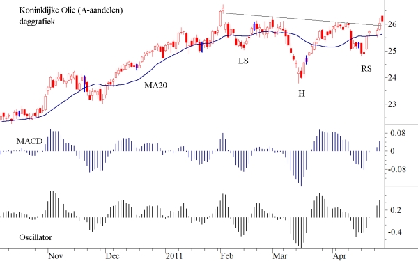 Het aandeel Koninklijke Olie fluctueerde in de afgelopen 26 jaar sterker dan de AEX Index, maar de dalingen waren duidelijk beperkter. Begin 1985 bedroeg de voor bonusuitkeringen gecorrigeerde koers van RD €4,86. Op 12 april was dit €25,09. Dit is een stijging van ruim 400%. De AEX Index noteerde indertijd 86,87. Op 12 april 2011 was dit 360,77. De stijging was hier dus ruim 300%.