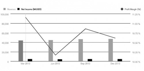 De B-aandelen worden momenteel (4/4/2014) verhandeld voor USD 124,31 per aandeel.