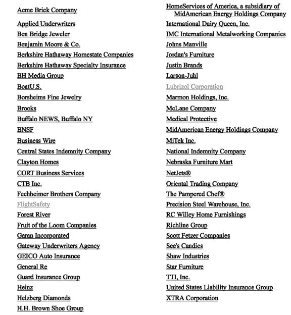 Lijst van de Berkshire Hathaway subsidiaries (incl. vezekeringen, nutsbedrijven, en spoor)