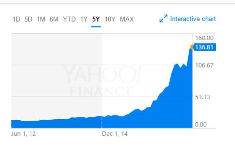 Een parel onder de parel is is Nvidia (NASDAQ:NVDA), een aandeel die de afgelopen 5 jaar met 700% steeg. De producent van computerhardware zat in de lift na de bekendmaking van beter dan verwachte kwartaalcijfers dinsdag nabeurs. Het aandeel van de producent van computerhardware steeg bijna 12 procent. De leverancier van grafische chips en ARM systems-on-chips zag zijn omzet in het eerste kwartaal van zijn gebroken boekjaar 2018 met bijna 50 procent stijgen naar 1,94 miljard dollar. De winst steeg met 144 procent naar 507 miljoen dollar.