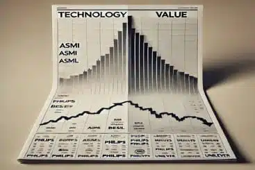 In de afgelopen anderhalf jaar zijn de koersen van technologie-aandelen hard opgelopen. Nu zowel in Europa als in de VS het startschot voor renteverlagingen is gegeven, kiezen beleggers ervoor om een deel van hun winst op technologie-aandelen te verzilveren en opnieuw te beleggen in waarde-aandelen die zijn achtergebleven. De uitzondering in het overzicht is Adyen, dat zich opnieuw verder omhoog heeft gewerkt naar de koersval van een jaar geleden.