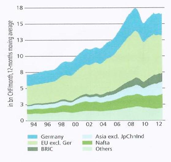 Grafiek: Bestemming Zwitserse export. Bron: UBS