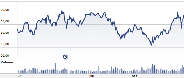 Daimler meldt zich weer aan de top (Koers € 69,04)