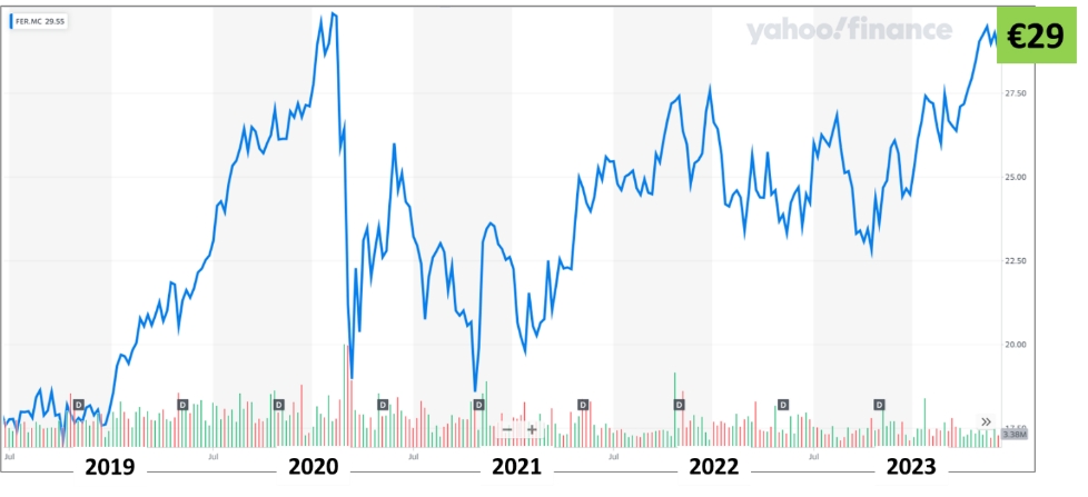 Koersontwikkeling Ferrovial in de afgelopen vijf jaar