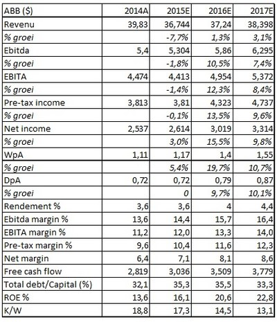 Tegelijkertijd kunnen we vaststellen dat er sinds medio 2014 stappen vooruit zijn gezet. In sommige opzichten heeft het bedrijf de concurrentie al weer ingehaald en soms zelfs gepasseerd. Het valt bovendien niet te ontkennen dat ABB voor zichzelf een ambitieus traject heeft uitgestippeld tot 2020. Deze doelstellingen zeggen ook dat de jaren 2014/15 een dieptepunt zijn en dat het vanaf nu beter zal gaan, ook met de koers. Gelet op de discount kan dit voor de meer offensief ingestelde belegger een mooi instappunt zijn. Het aandeel hoort echter nog niet thuis in een defensieve of gebalanceerde portefeuille.