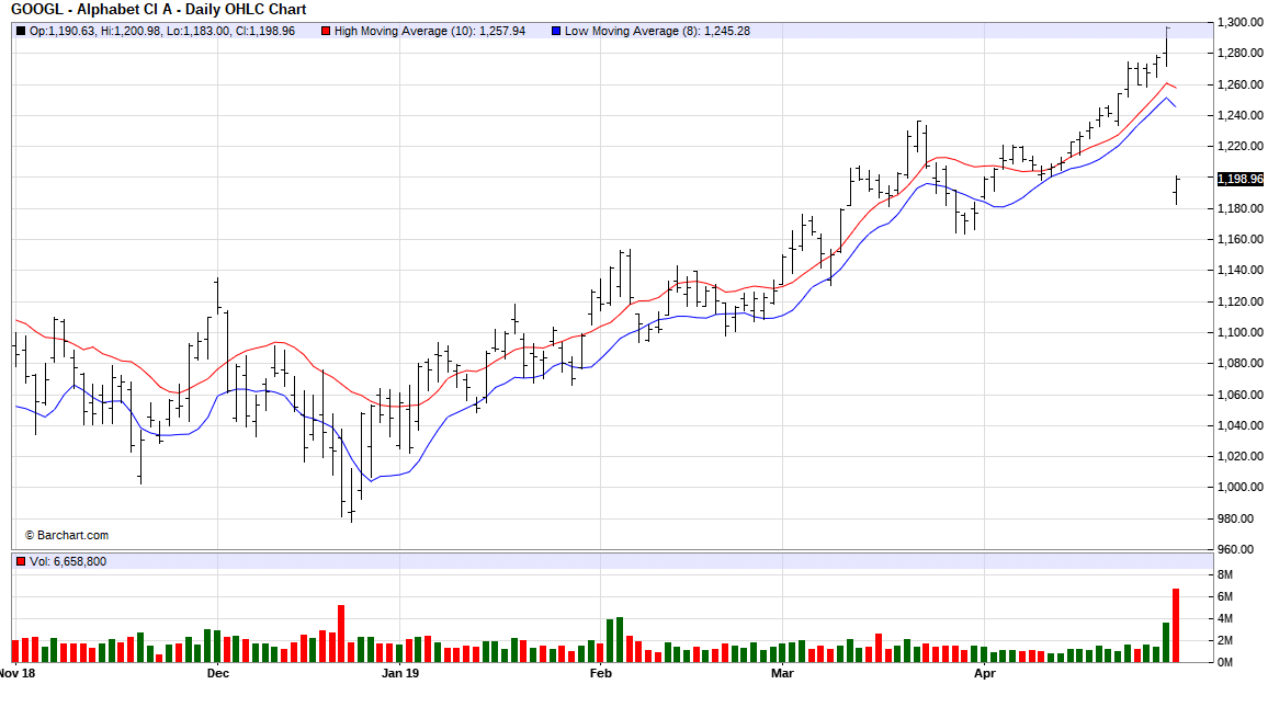 Ze hebben het geweten bij Alphabet/Google. Na het bekend worden van de resultaten over het 1ste kwartaal van 2019 duikelde de koers met 7,5% en werden beleggers $ 70 miljard armer. Waren de resultaten dan zo mager? Op het eerste gezicht viel dat allemaal reuze mee. De omzet steeg met maar liefst 17% naar het reusachtige bedrag van $ 36,3 miljard, maar dat was wel $ 1 miljard minder dan analisten hadden voorspeld.
