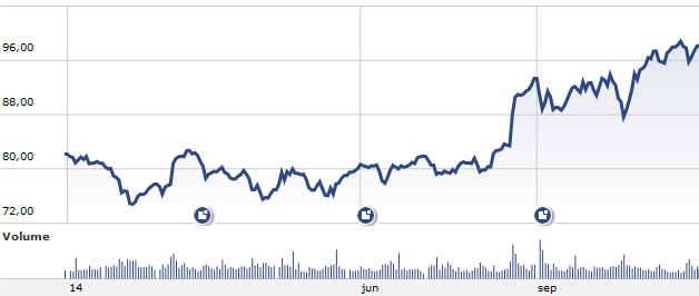Voor een Doe-het-zelf bedrijf als Home Depot is de stand van de woningmarkt van groot belang. Een bloeiende woningmarkt betekent actieve klussers. In de Verenigde Staten is de situatie op de huizenmarkt na de crisis van 2009-2011 geleidelijk verbeterd. Zowel vraag en prijs zijn de afgelopen jaren sterk verbeterd. In het derde kwartaal stegen de prijzen van bestaande huizen met 4,9% na en stijging van 4,4% in het tweede en 8,3% in het eerste kwartaal. De aanhoudende verbetering op de huizenmarkt is terug te zien aan de resultaten van Home Depot. Die zijn de afgelopen jaren alleen maar beter geworden. Dat is trouwens terug te zien aan de koersontwikkeling. Die is alleen maar bergopwaarts gegaan.