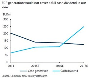 De mindere solvabiliteit wordt ook nog eens verergerd door een tegenvallende flexibiliteit van de balans. De financial leverage ratio bedraagt volgens ingewijden bij Delta Lloyd ongeveer 40%, ook na de emissie. Dat percentage is aan de hoge kant en het is goed mogelijk dat de toezichthouder een afbouw van de schuldpositie gaat vragen. Dat maakt het moeilijker om de solvabiliteit te verbeteren. De enige optie die feitelijk overblijft is een deel van de portfolio in de verkoop doen. Het vermogen herstellen dankzij aanzwellende vrije kasstromen is een illusie. Delta Lloyd is in dat opzicht een achterblijver in de sector. De komende jaren zullen de vrije kasstromen €140 – €180 miljoen belopen. Die kasstromen zijn amper voldoende om de dividendbetalingen te dekken. Dat zal bijna zeker het geval zijn als Delta Lloyd inderdaad het stokdividend gaat afschaffen en alleen nog maar cash gaat uitkeren.