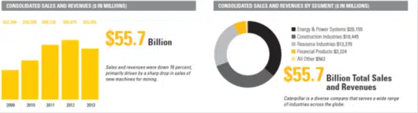 Caterpillar, opgericht in 1928, is de meest vooraanstaande fabrikant ter wereld van bouw- en mijnbouwmaterieel, diesel- en aardgasmotoren en industriële gasturbines. Het meest in het oog springende zijn de immense vorkheftrucks en bulldozers van Caterpillar, die tot de grootste van de wereld mogen worden gerekend. Caterpillar verkoopt voor de helft haar producten aan afnemers buiten de Verenigde Staten en is hiermee een vooraanstaande Amerikaanse exporteur. Ook biedt het bedrijf verwante diensten aan, zoals onderhoud aan de systemen en verzekeringen en financieringen voor haar klanten. Producten van Caterpillar worden gebouwd in fabrieken in de VS en in andere vestigingen in landen, verspreid over de wereld.
