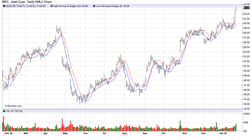 Dat is ook af te lezen aan de financiële resultaten. Die zijn op zijn best volatiel. Bovendien heeft Intel zijn onbetwist marktleiderschap uit de 20ste eeuw allang verspeeld. Goede resultaten over het 4de kwartaal wekken de indruk dat het tij weleens kan gaan keren.
