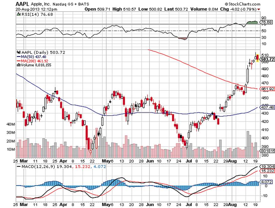 Maandag 12 augustus maakte de bekende raider of aandeelhouderactivist Carel Icahn via een tweet wereldkundig, dat hij een groot belang had genomen in Apple. Het bedrijf was volgens hem ondergewaardeerd en daar had hij een hartelijk gesprek over gevoerd met Tim Cook, de CEO van Apple. In een reactie op het nieuws steeg de koers van het aandeel met bijna 5% naar het hoogste niveau in een halfjaar.