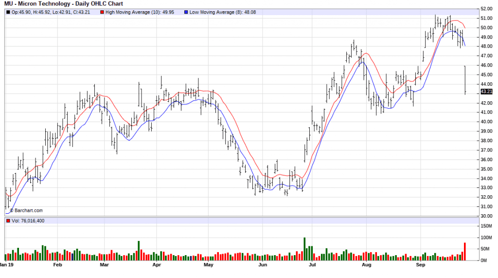 Afgelopen vrijdag was een slechte dag voor de semiconductorsector. Steen des aanstoots waren tegenvallende cijfers van Micron en dito vooruitzichten. De laatste zag zijn koers met 11% dalen en trok ook nog eens de hele sector mee omlaag.