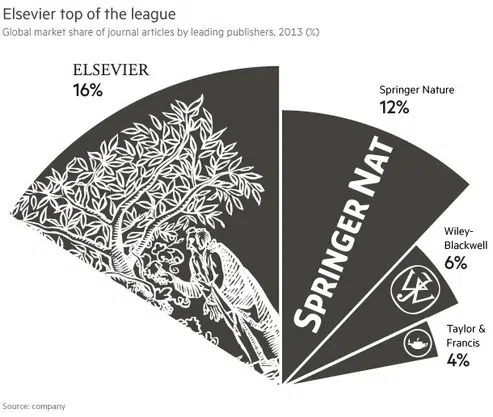 De hoge marges zijn te danken aan het feit, dat academici en universiteiten kopij van artikelen gratis aanleveren, terwijl diezelfde academici en universiteitsbibliotheken vervolgens een duur abonnement moeten afsluiten om dat ‘gratis’ artikel in een academisch tijdschrift te kunnen lezen. RELX publiceert jaarlijks ongeveer 380.000 artikelen in digitale of papieren vorm in pakweg 2500 vooraanstaande tijdschriften zoals the Journal of Financial Economics. Juristen nemen een abonnement op het digitale platform Lexis Nexis, terwijl de artsenij dat doet voor the Lancet. Open Access is een succesvol concept gebleken het aantal publicaties is geëxplodeerd. Die mere a boire heeft de noodzaak verhoogd om het kaf van het koren te scheiden. Dat is de nieuwe rol van een ‘uitgever’ als Reed Elsevier geworden. Hun nieuwe rol is die van certification of quality. Dat betekent dat de nadruk komt te liggen op selectiviteit. Nog slechts een handvol auteurs of artikelen verschijnt in een van de tijdschriften. In 2014 stuurden maar liefst 1,8 miljoen auteurs een artikel naar Reed Elsevier. Bij de economische tijdschriften komt slechts 6% van het aanbod in aanmerking voor publicatie. De groeiende selectiviteit maakt het ook voor gevierde academici nagenoeg onmogelijk om de macht van Reed Elsevier te trotseren. Ook zij worden immers geacht te publiceren in de meest prestigieuze tijdschriften. Daar ontlenen ze vaak hun naam en faam aan. Publiceren bij Reed Elsevier betekent ook nog eens publiceren bij de nummer 1 in de global market.
