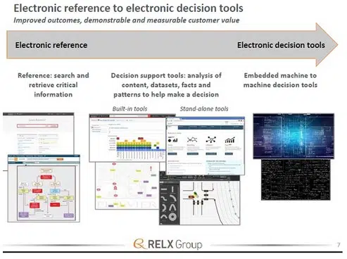 Ondanks het succes van Open Access zullen spelers als Reed Elsevier niet zomaar verdwijnen. Hun rol zal eerder dominanter worden. Hier spelen de 7000 technologen een doorslaggevende rol. Dit kleine leger aan ict-ers moet Reed Elsvier een leidende rol geven als het gaat om het verzamelen en interpreteren van big data. Ze moeten ook steeds betere reference tools en decision support tools ontwikkelen. Academici en professionals hebben een groeiende behoefte aan de eerstgenoemde tools om beter hun werk te doen. Beleidsmakers en bedrijven zien graag steeds weer nieuwe en verbeterde algoritmes die hen in staat moeten stellen hun beslissingen beter onderbouwd te nemen. De Decision Support Tools is populair bij de clientèle van de divisie Risk & Buisiness Information. Die populariteit maakt van deze divisie de snelste groeier binnen RELX met een tempo van 7% per jaar. Dit tempo verwacht het management nog jaren te kunnen volhouden, juist omdat RELX hier een leidende positie heeft. Die leidende rol komt niet zomaar in het geding omdat het van de concurrentie op voorhand hoge investeringen eist. Het is de intentie en de strategische doelstelling het succes bij Risk & Business Information te herhalen bij de divisie.
