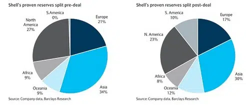 De overname stelt Shell bovendien in staat zijn huidige initiatieven om een portfolio aan deepwater assets op te bouwen eens kritisch tegen het licht te houden. Kostbare projecten, zoals de teervelden in Canada of in de Noordelijke IJszee kunnen getemporiseerd worden of van de hand gedaan. Dat geldt ook voor projecten in politiek instabiele landen. Ook die kunnen nu van de hand gedaan worden. Tijdens de analistenbijeenkomst gewijd aan de overname sprak Van Beurden de verwachting uit dat de komende jaren onderdelen verkocht gaan worden ter waarde van $ 30 miljard.