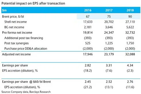 Na het bekend worden van de overeenkomst ging de koers van het aandeel Shell onderuit. Beleggers vonden de premie blijkbaar aan de hoge kant. Ze vrezen enerzijds voor een behoorlijke verwatering van de winst per aandeel (WpA). Door de overname komen er 1,532 miljard aandelen bij. Volgens de heer Van Beurden hoeven beleggers zich niet zoveel zorgen te maken. Al vanaf 2017 zal de overname al resulteren in een positieve bijdrage aan de WpA, maar vanaf 2017 zal dat pas echt goed merkbaar zijn. Volgens sommige analisten is Shell hier iets te optimistisch. Ze voorzien de komende jaren een verwatering, zij het dat de effecten van de verwatering snel minder worden.